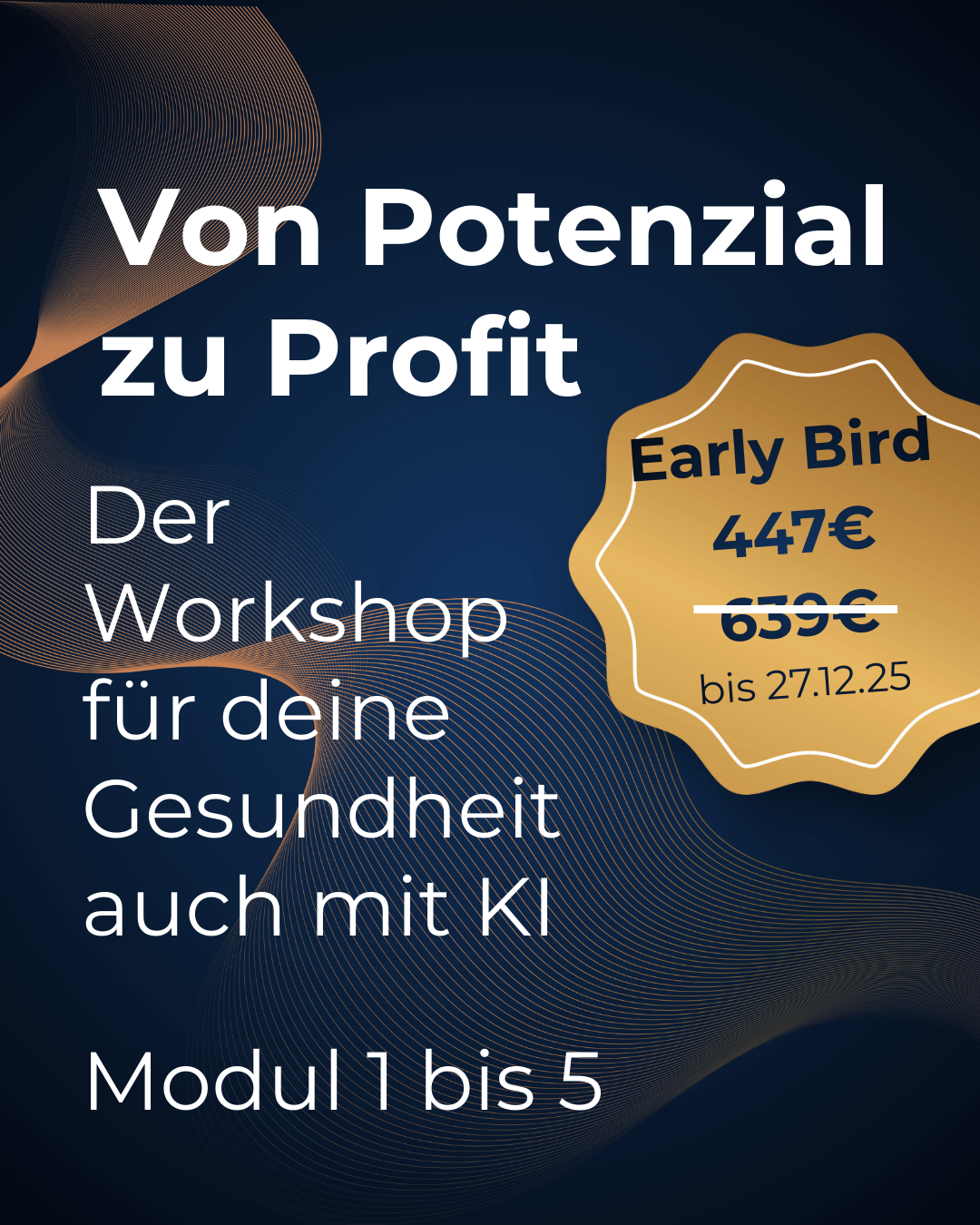 für die Teilnahme an allen Modulen 15.01.2026 / 19.02.2026 / 19.03.2026 / 16.04.2026 / 21.05.2026 inkl. aller Materialien, die im Rahmen des Workshops bereitgestellt werden.